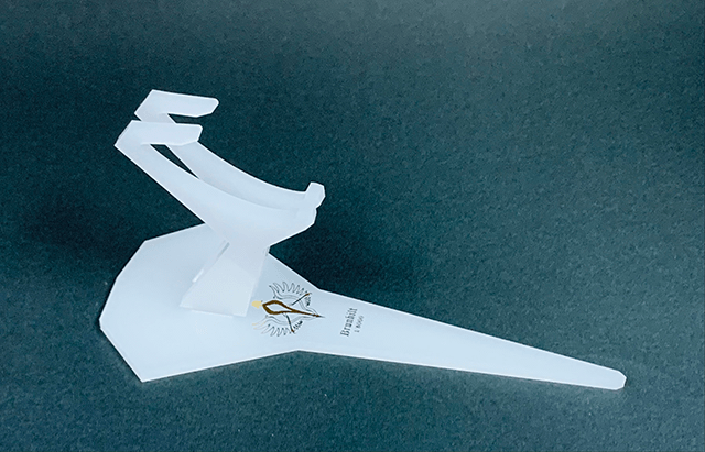 ・乳白色で絶妙に透けた白く美しいアクリルスタンドに金色で紋章を箔押し!
